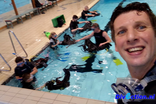 We duiken in groepjes van maximaal 4 plus instructeur. Daarbij houden we boven water continu minimaal 1,5 meter afstand.